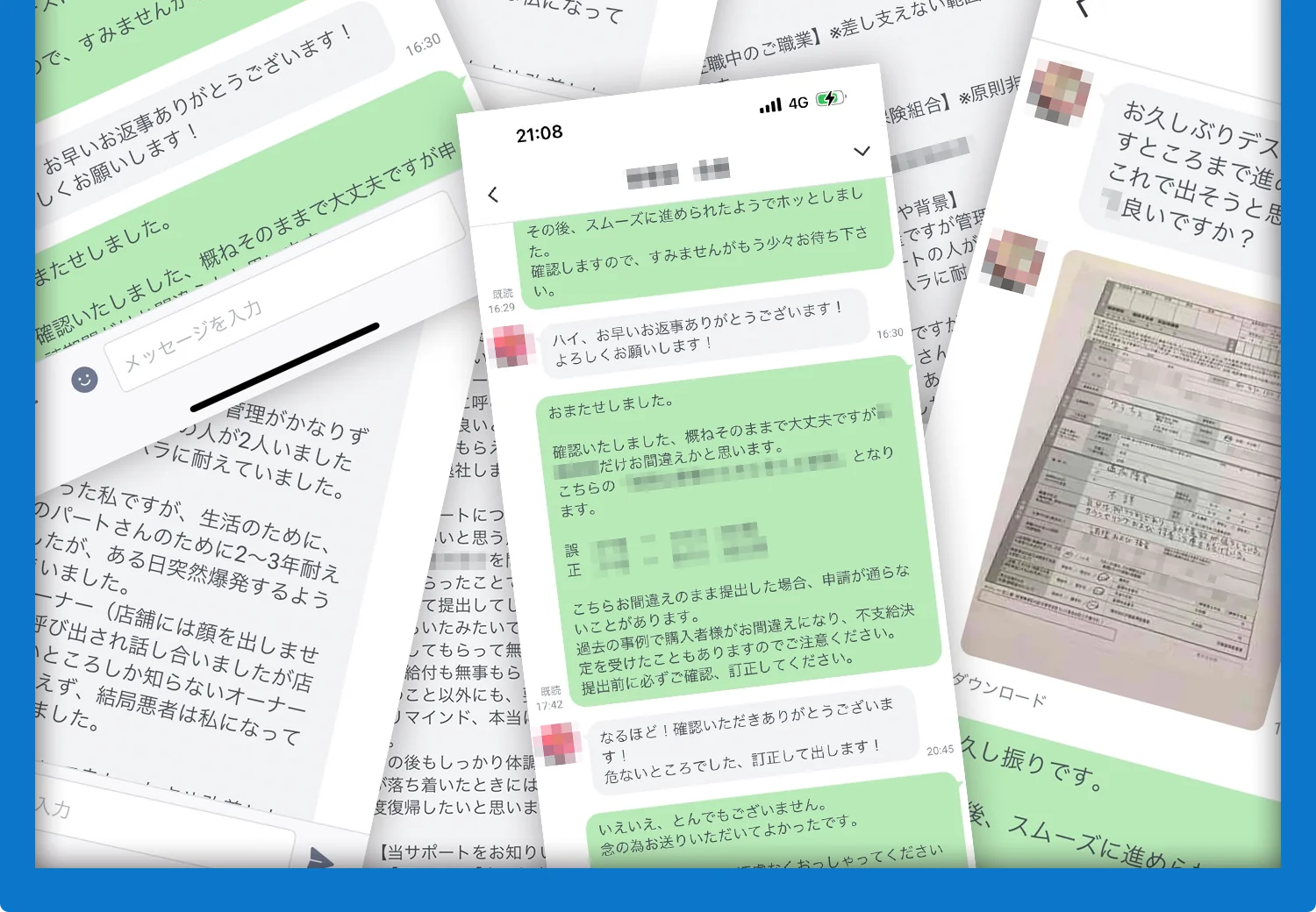 法令遵守の観点から不正受給にあたる方、またはそのような言動のある方へのサポートは固くお断りさせていただいております。